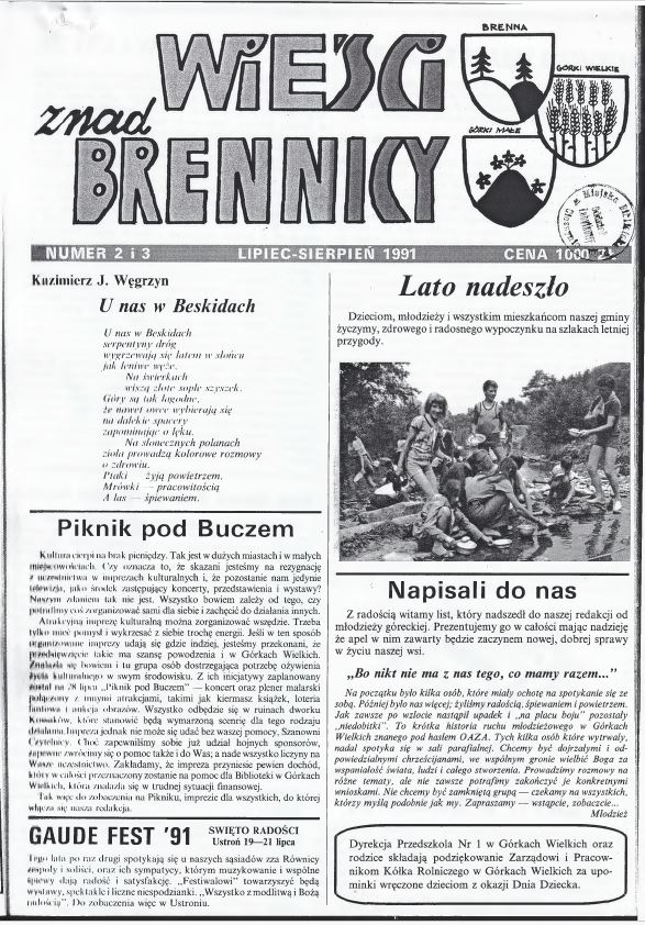 Na początek polecamy pierwszy rocznik „Wieści znad Brennicy, z 1991 roku.