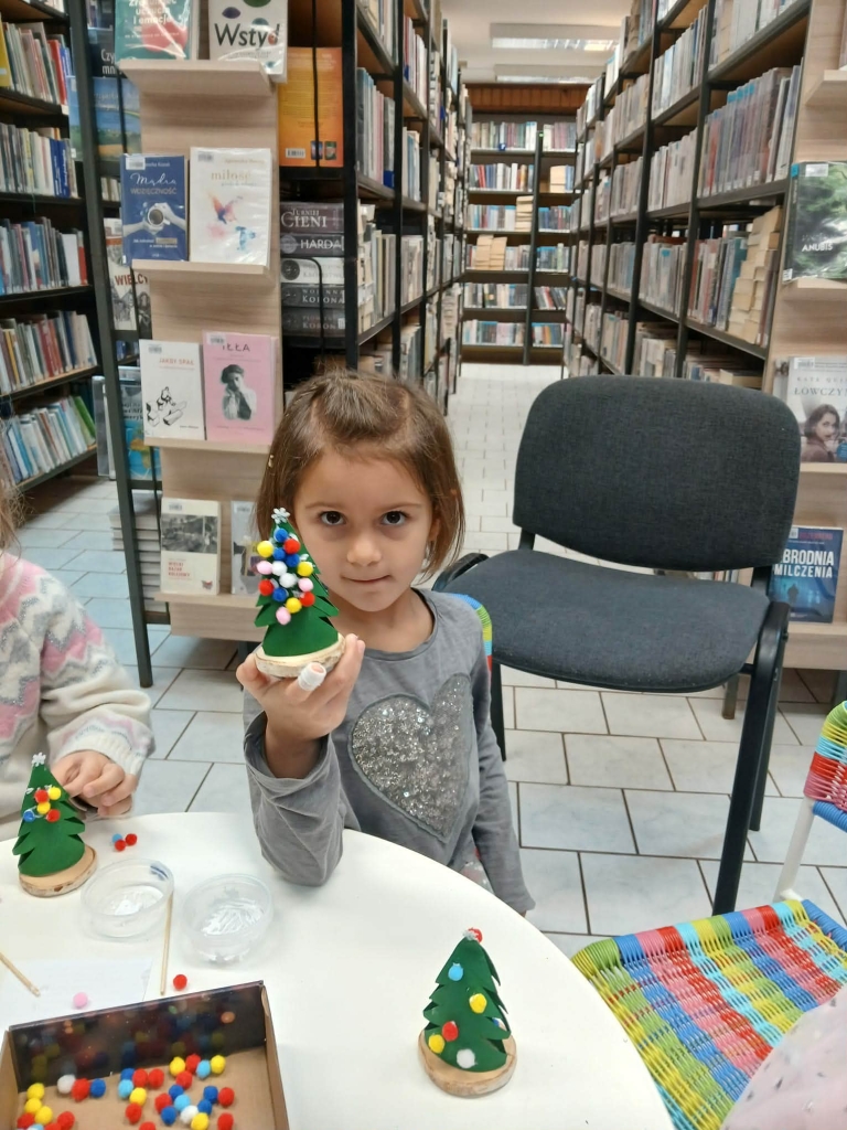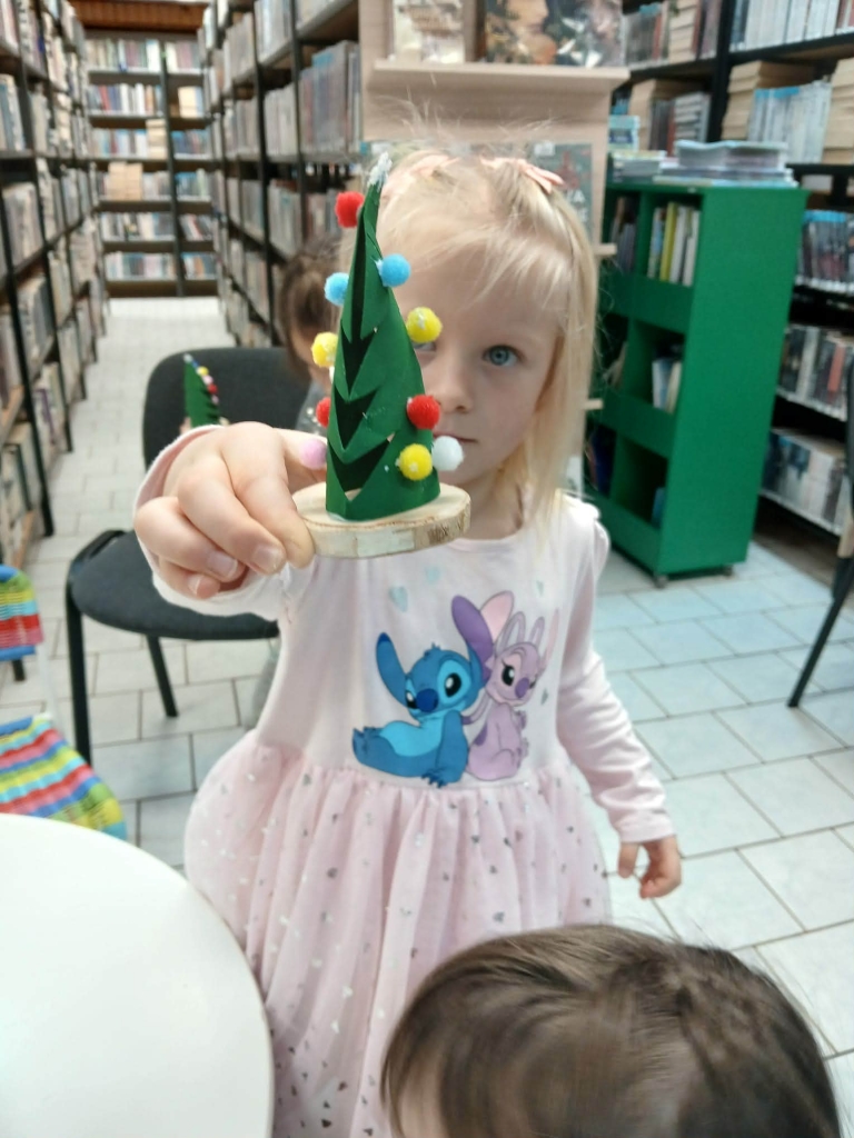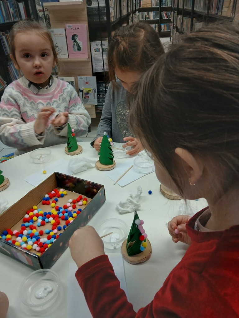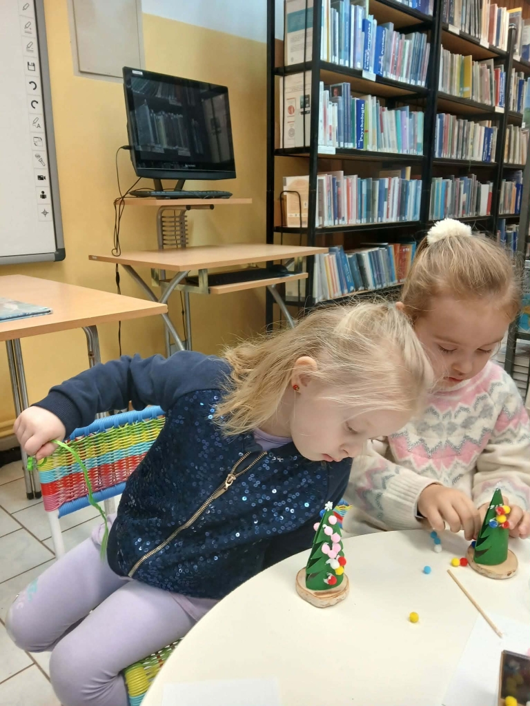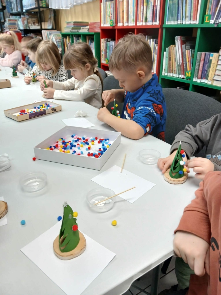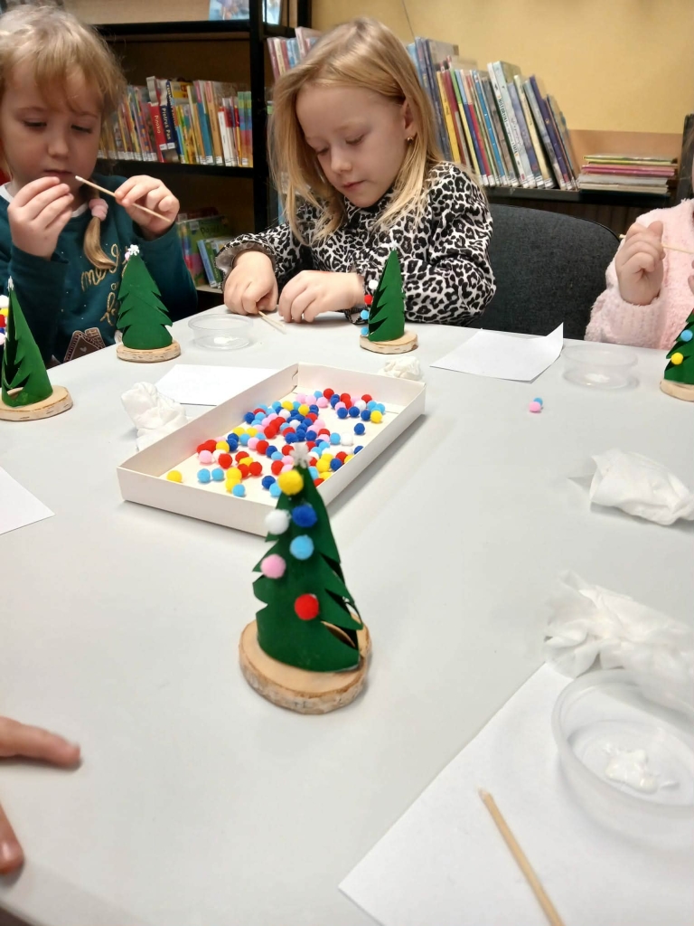 Po lekturze, w części plastycznej spotkania, dzieci wykonały piękne świąteczne choinki